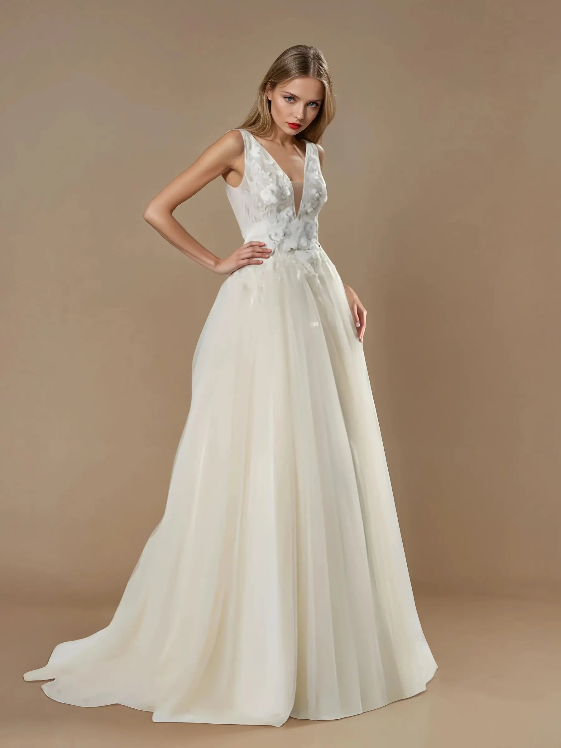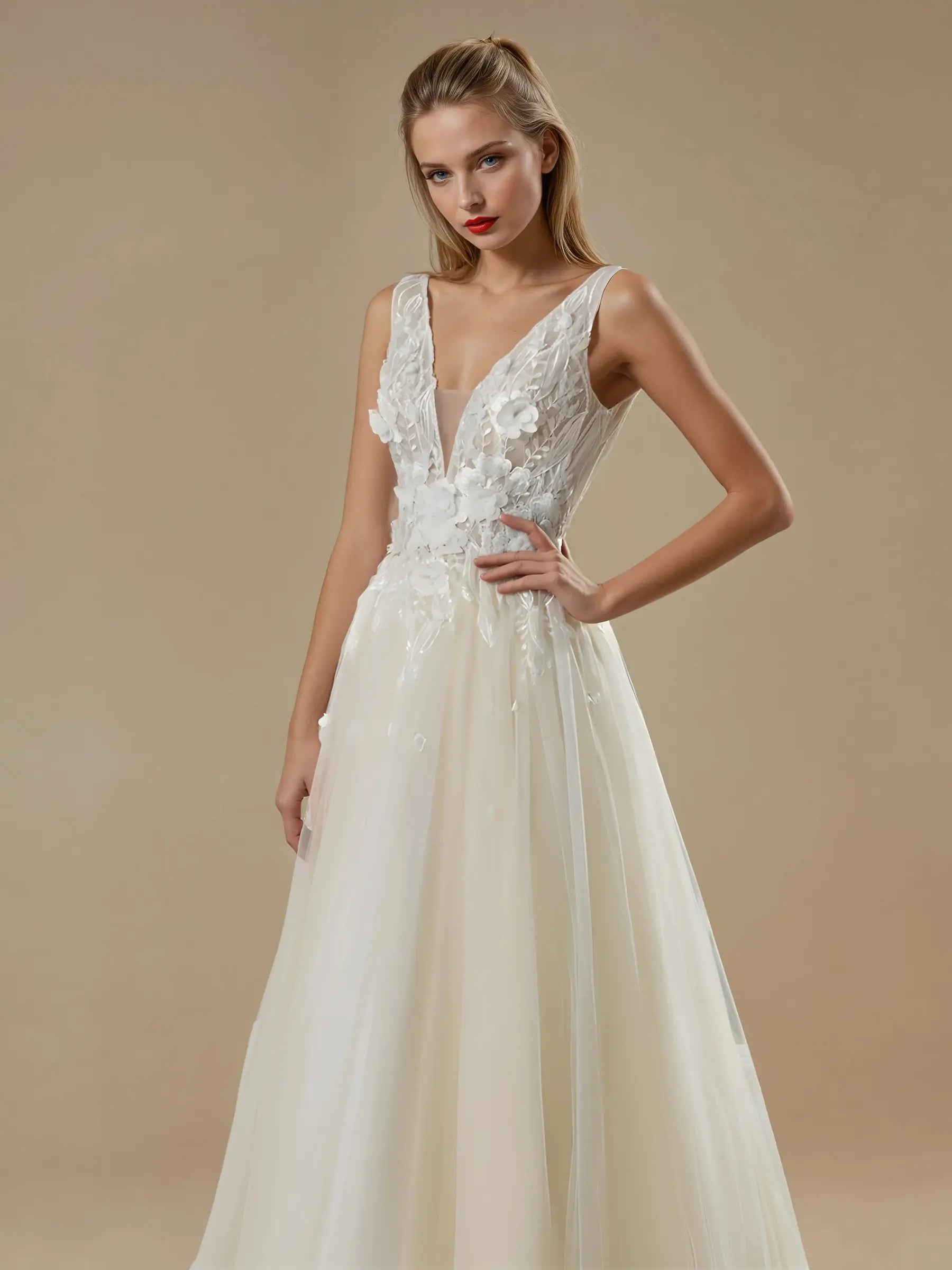 V-Neck A-Line Lace Wedding Dress
